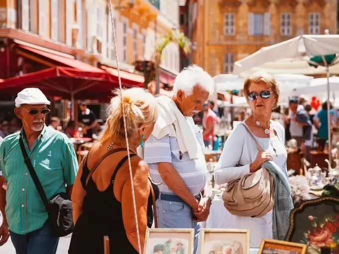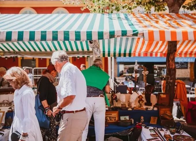广场上的鱼摊,摊主手舞足蹈给客人介绍自己的食材,殊不知,几只鬼鬼祟祟的海鸥正停留在摊主的伞蓬上,伺机而动。涂着粉红色色调明亮的几家肉铺,已经卖完了一大半的食材,客人们排着长队,从店内一直排到了我坐着的咖啡厅。集市已是熙熙攘攘,各种新鲜的食材、鲜花、香料、农产品,摊主们都带着普罗旺斯人民特有的强调与自豪感,让你来试吃。突然间,刺耳的摩托声掩盖一直停留在耳边的交谈,晃过神,这就是普罗旺斯,原始与现代的冲撞,造就了当地特有的民俗。