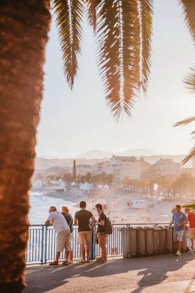 尼斯天使湾,旁边便是英格兰大道。夕阳下的海岸,金色的暖阳照在海面,成群的复古老爷敞篷车从身边驶过,这一切的美好,就像是闯入了一副上世纪五十年代的复古风景卡片,精致得刚刚好。